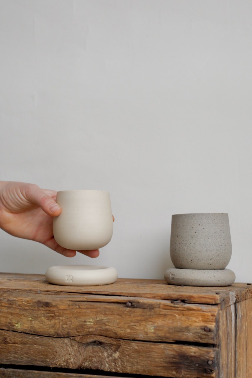 Minimalistic version of our seesaw cup, that comes with a dognut coaster to stop your coffee from sloshing around.