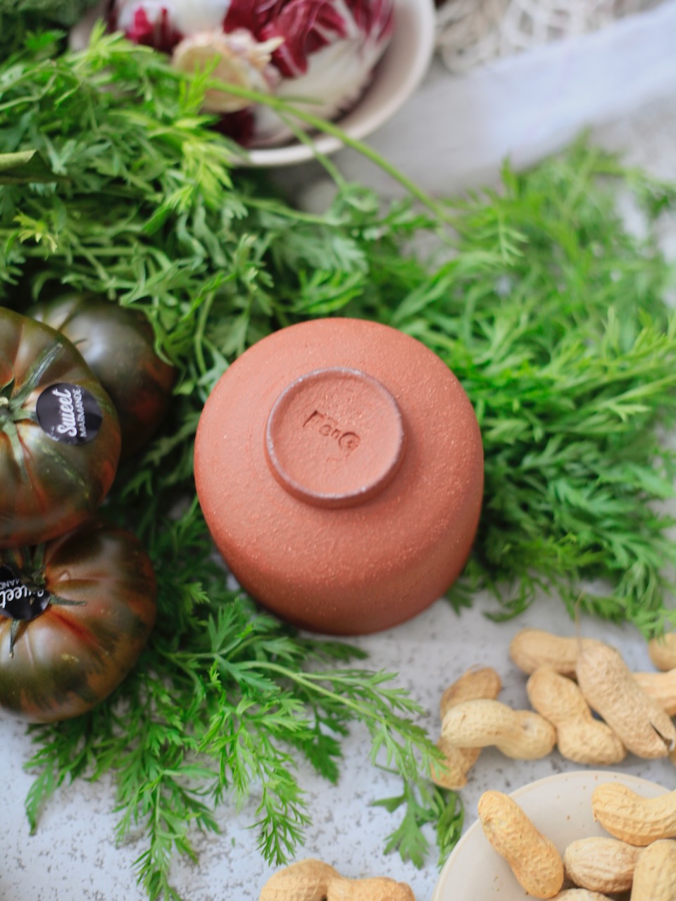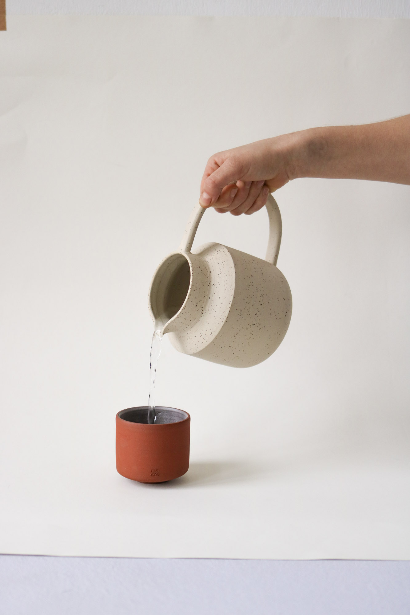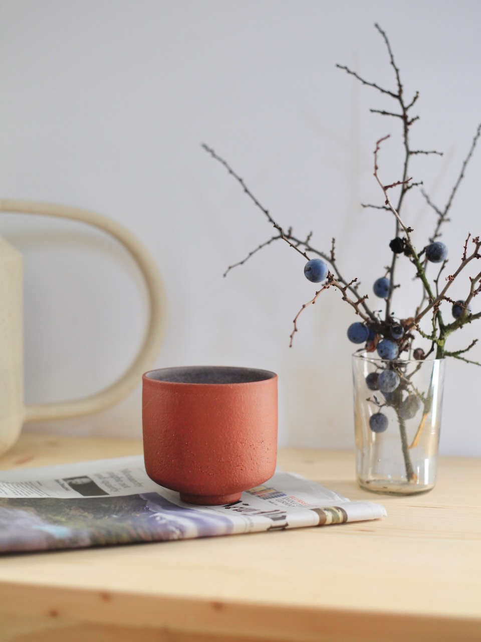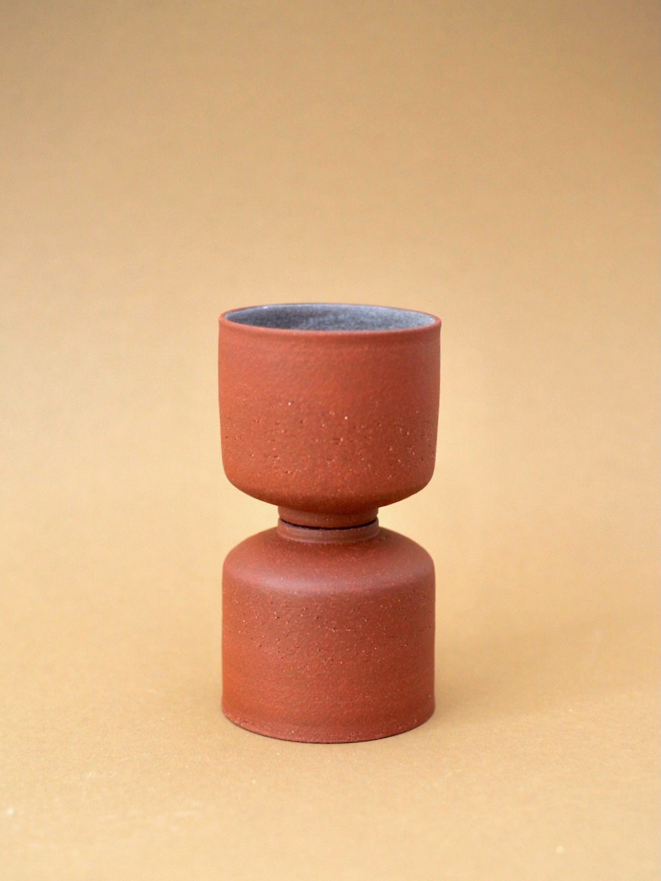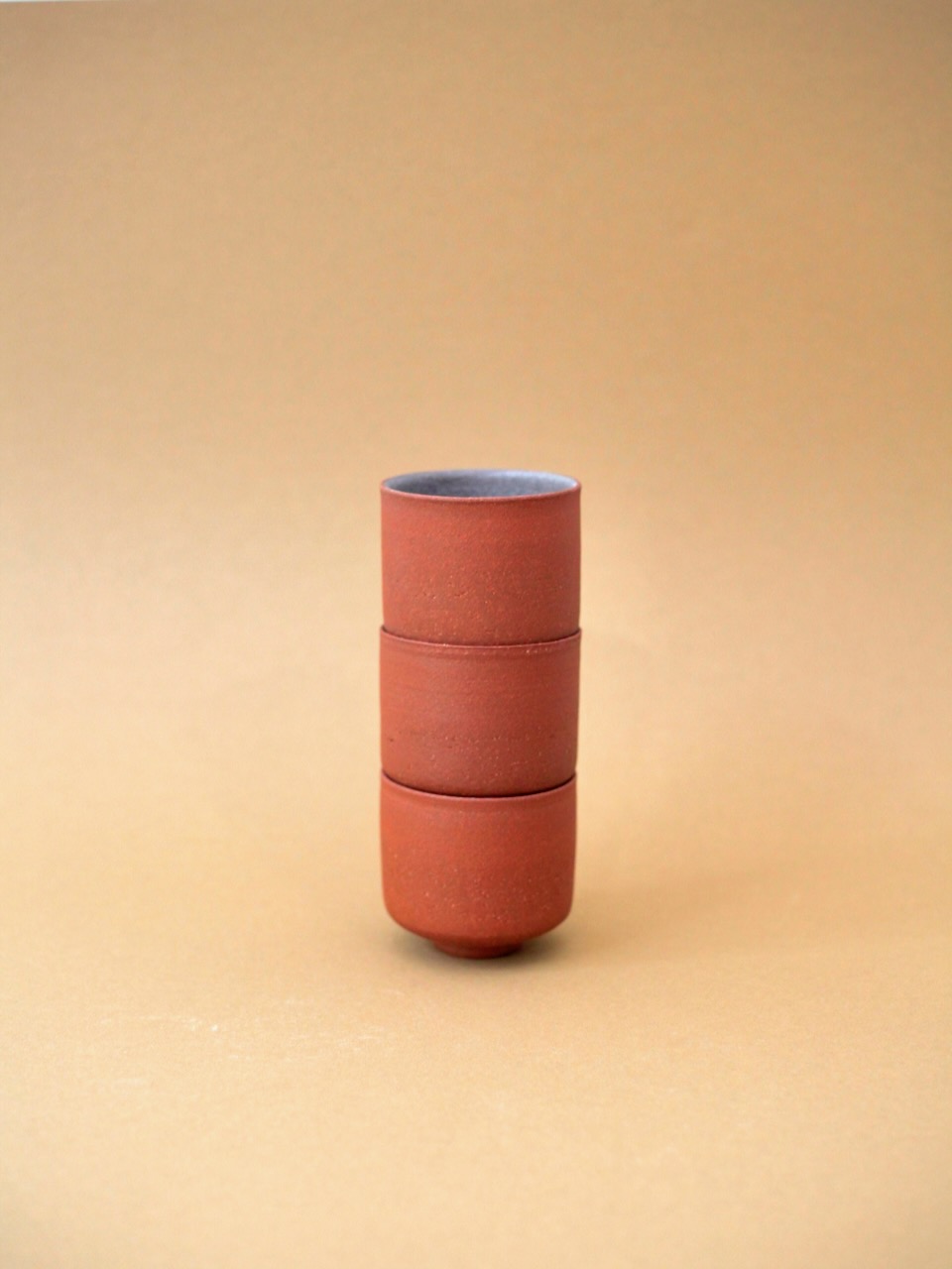 Minimalistic tumbler made of red stoneware clay. Glazed only from the inside with a matte, semi-transparent glaze.